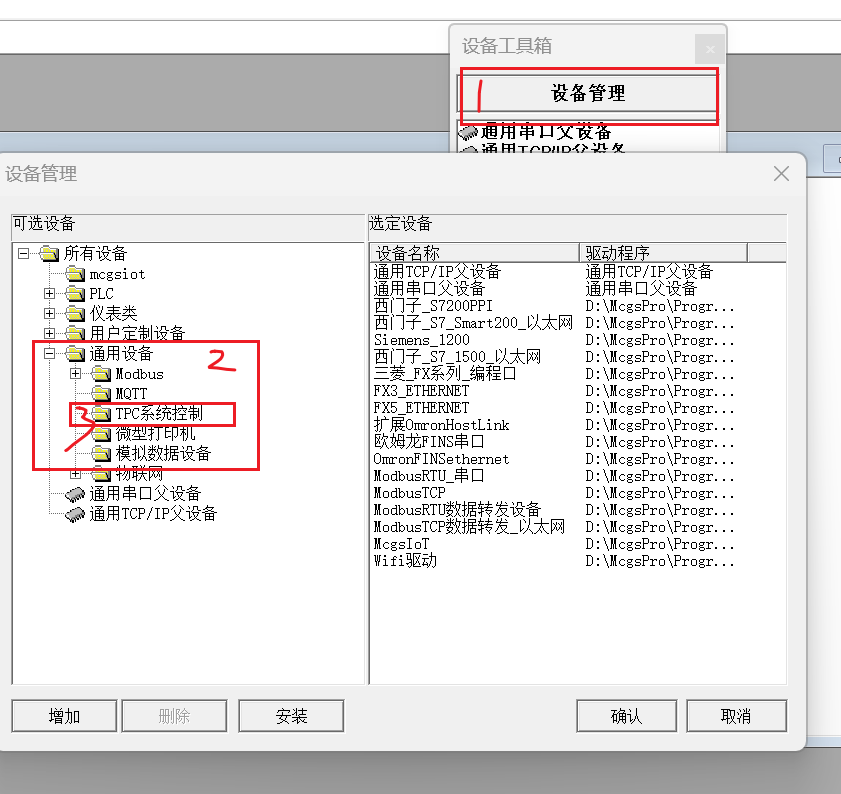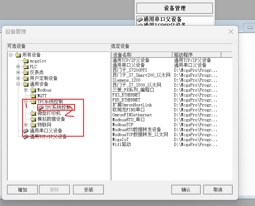 需要在McgsPro組態(tài)軟件的設(shè)備窗口添加 TPC系統(tǒng)控制,然后在實(shí)時(shí)數(shù)據(jù)庫(kù)里添加你需要的變量名,比如亮度調(diào)整   然后在設(shè)備窗口打開(kāi)TPC系統(tǒng)控制  在通道名稱里選擇你想調(diào)用的變量