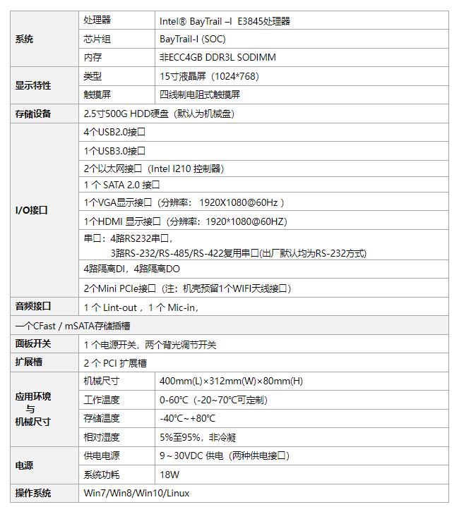 PPC-15A1 是一款配置 15"液晶屏及觸摸屏的無風扇低功耗工業平板電腦,采用Intel®AtomE3845(2M Cache,1.91 GHZ)CPU,內置非 ECC 4GB DDR3L SODIMM 內存條,具有多種接口。整體平臺具有更強的圖形處理能力,更快的處理速度,全尺寸觸摸屏操作。本產品可選配置帶有兩個擴展插槽(PCI 或 PCIe),可獨立安裝與拆卸相應的板卡。