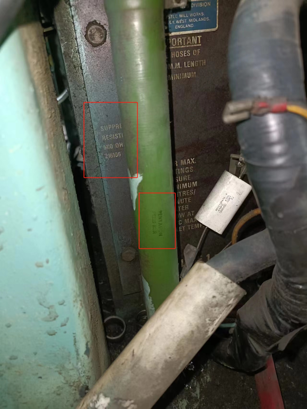 請問各位專家,有沒有見過如下的電阻(個人感覺像是能耗電阻)是做什么用的?它是在五金制品的碰焊機上使用的,其電路原理是兩相380V電源經(jīng)過可控硅后給焊接變壓器通電開始焊接,然后這個電阻是不是在焊接結(jié)束時給變壓器儲能釋放用的?誰有見過類似的應(yīng)用?第二張圖電阻上標著“PE220,500R”,個人感覺應(yīng)該是功率220W,阻值500Ω吧?