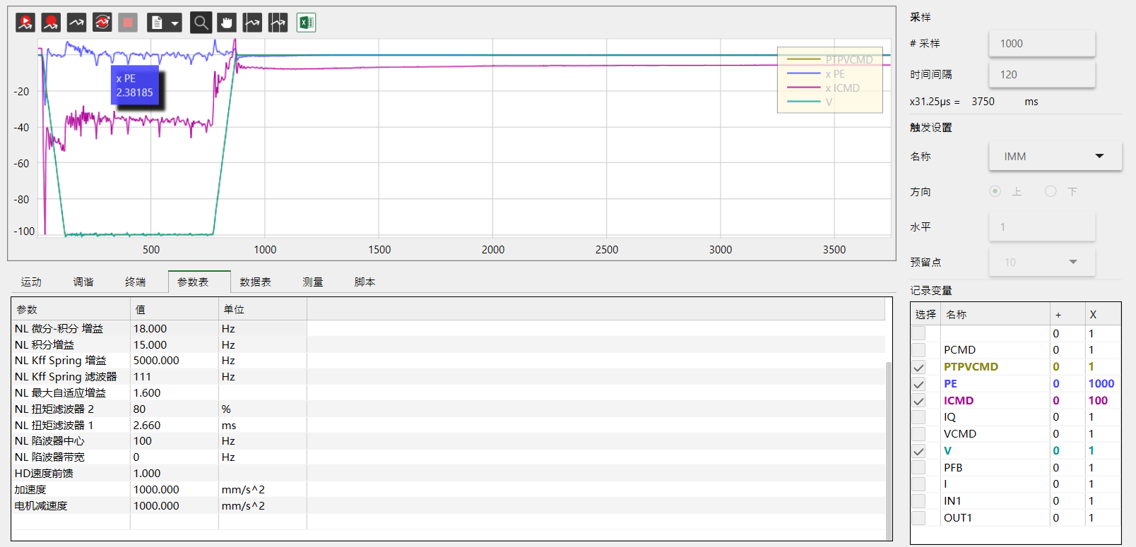 高創驅動器配直線電機時,應該調到什么程度算比較好的狀態,下圖波形算是正常的嗎?有沒有哪位大佬有比較詳細的調試手冊,參考一下。