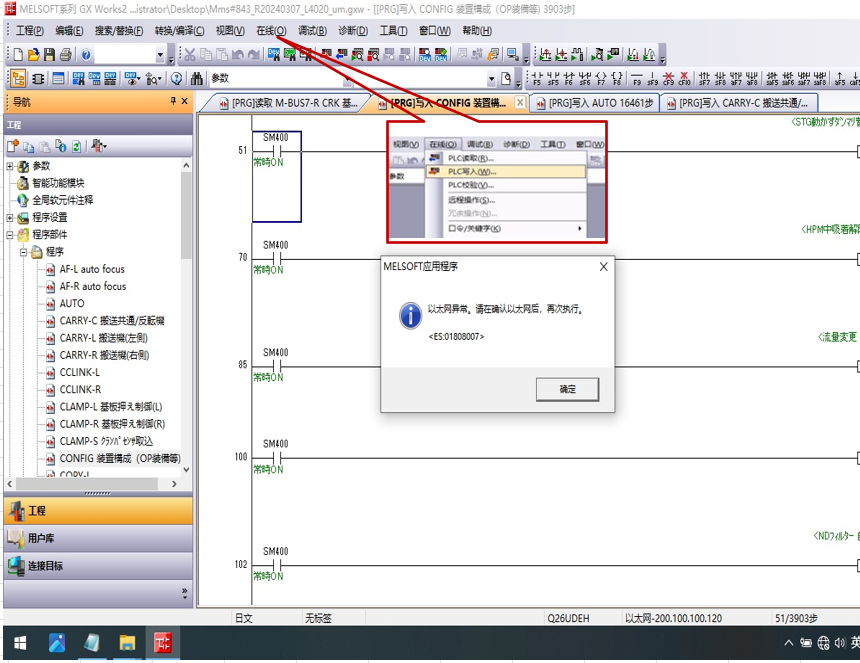 異常情況:  1目前重機臺下載的程序可以正常寫入🆗.