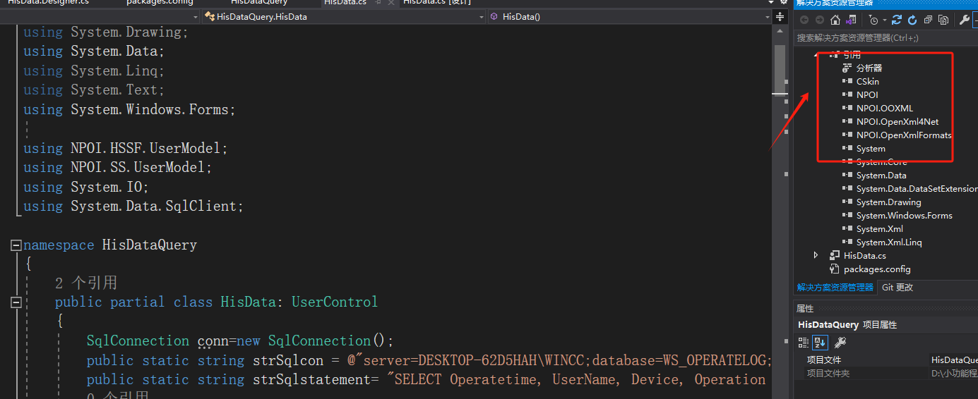 但是在這個控件中,我需要用到一些第三方功能,比如操作excel,這時我就得引用第三方的NOPI.DLL,這樣的話在最終生成的文件中