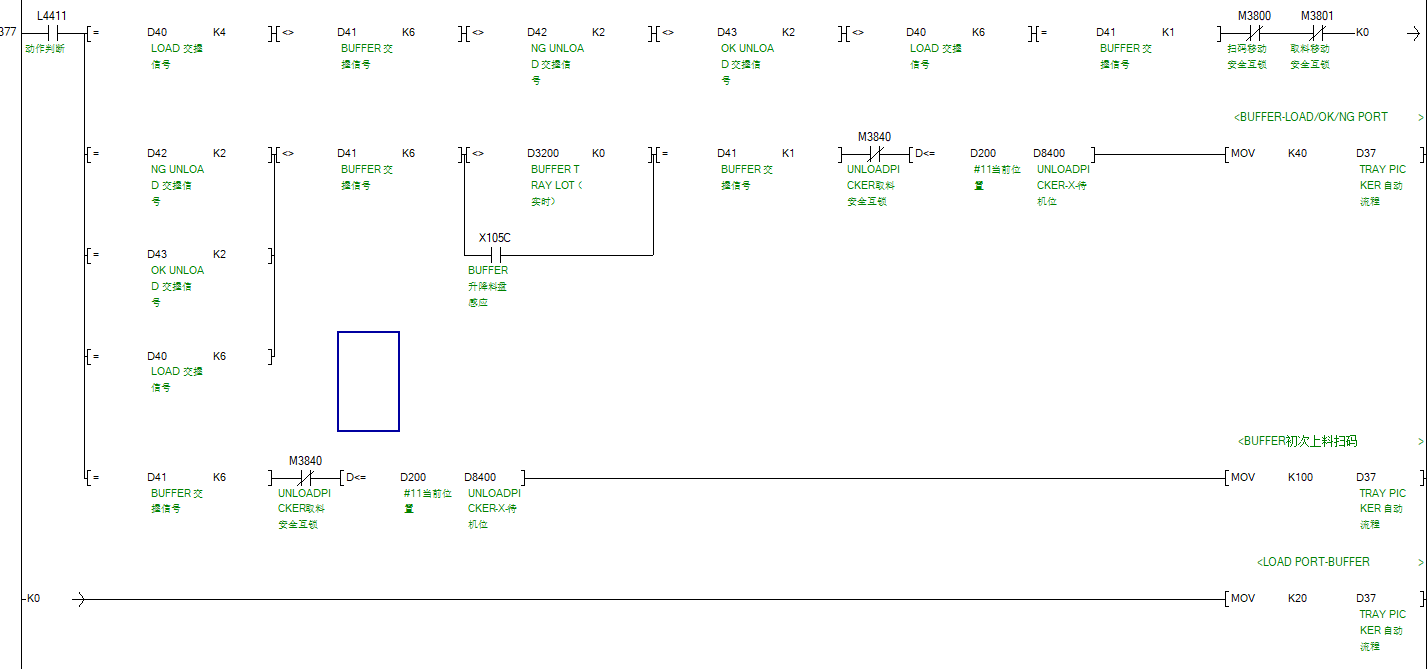 2、交握信號如果用字去維護(hù)單一邏輯,盡可能在統(tǒng)一的地方將其解析成位邏輯信號(加注釋)用于流程判斷,像圖1,用了一堆D字判斷=K1,K2,K3的,還得去別的地方去理解K1,K2,K3的字面意思,把你當(dāng)前的思路跳轉(zhuǎn)到別的地方,增加維護(hù)成本,或者可以標(biāo)簽常量定義K1,K2,K3的值,看個人取向