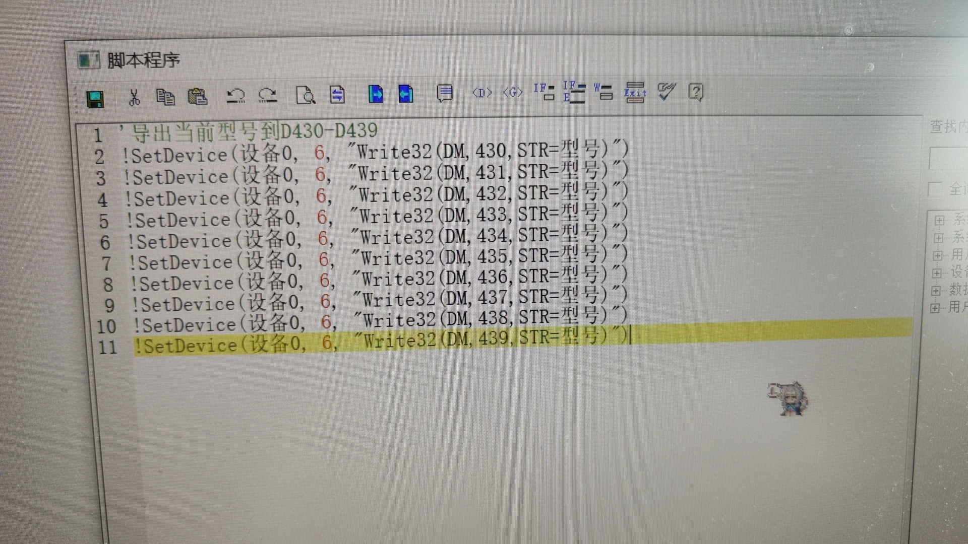 我這軟件的幫助里看到的這段腳本,不知道現在可不可以(因為這個PLC不在我手上)