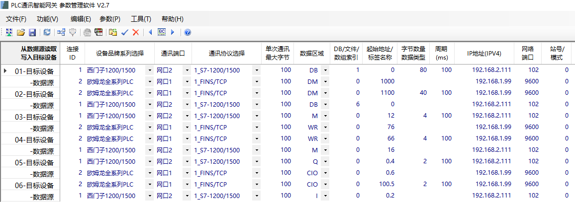 PLC之間通訊可以用IGT-DSER來(lái)實(shí)現(xiàn),支持三菱、歐姆龍、西門子等多種不同品牌的PLC之間通訊; PLC內(nèi)不用編程的,配置也比較簡(jiǎn)單,以下是歐姆龍跟西門子 通訊的案列: 任務(wù)1:從歐姆龍PLC讀取DM1000開始的40個(gè)字,寫入到西門子PLC的DB1.DBB0開始的80個(gè)字節(jié); 任務(wù)2:從西門子PLC讀取DB6.DBB0開始的40字節(jié),寫入到歐姆龍PLC的DM1100開始的20個(gè)字; 任務(wù)3:從歐姆龍PLC讀取W76、W77,2個(gè)字依次寫入到西門子PLC的MB12、MB13、MB14、MB15; 任務(wù)4:從西門子PLC讀取MB16~MB19,4字節(jié)寫入到歐姆龍PLC的W66~W67; 任務(wù)5:從歐姆龍PLC讀取CIO 0.6, 1個(gè)BOOL位寫入到西門子PLC的QX0.4; 任務(wù)6:從西門子PLC讀取IX0.2,1個(gè)BOOL位寫入到歐姆龍PLC的CIO100.5; 其它品牌的通訊案例: PLC之間通訊.rar (4596 K) 下载次数:52 |