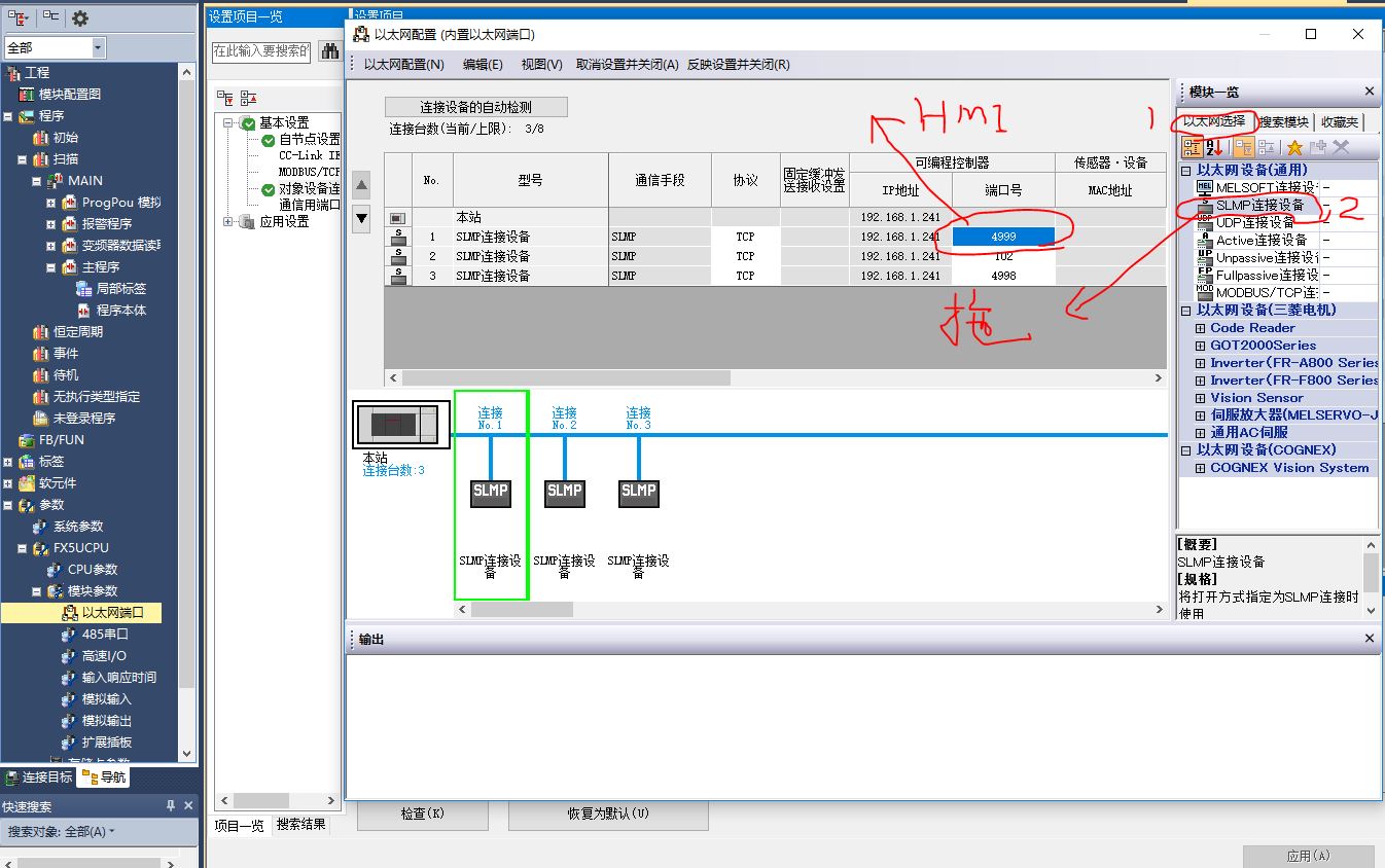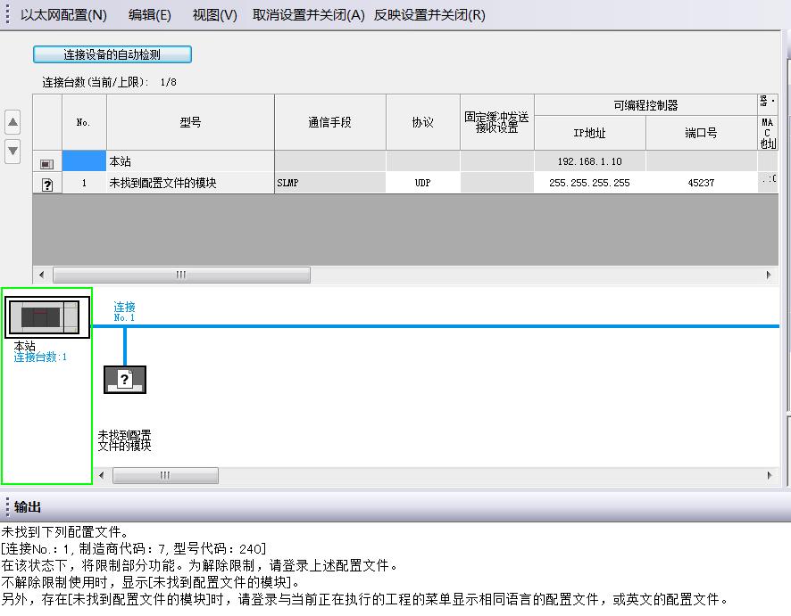 5U是某寶上買二手的,上次發貼求助過大家,通過交換機IP連不上威綸觸摸屏,這次我換了個三菱的屏測試,型號是GS2107-WTBD,屏與5U的IP設為如下圖,連接設備自動檢測反映時,顯示:未找到配置文件的模塊,是PLC未用戶認證功能限制造成的還是......無頭緒了,懇請大神指點支招,版本如下,安全性強化模式已啟用,點擊可編程控制器的用戶認證啟用時,彈出:執行了連接可編程控制器的版本不支持功能。