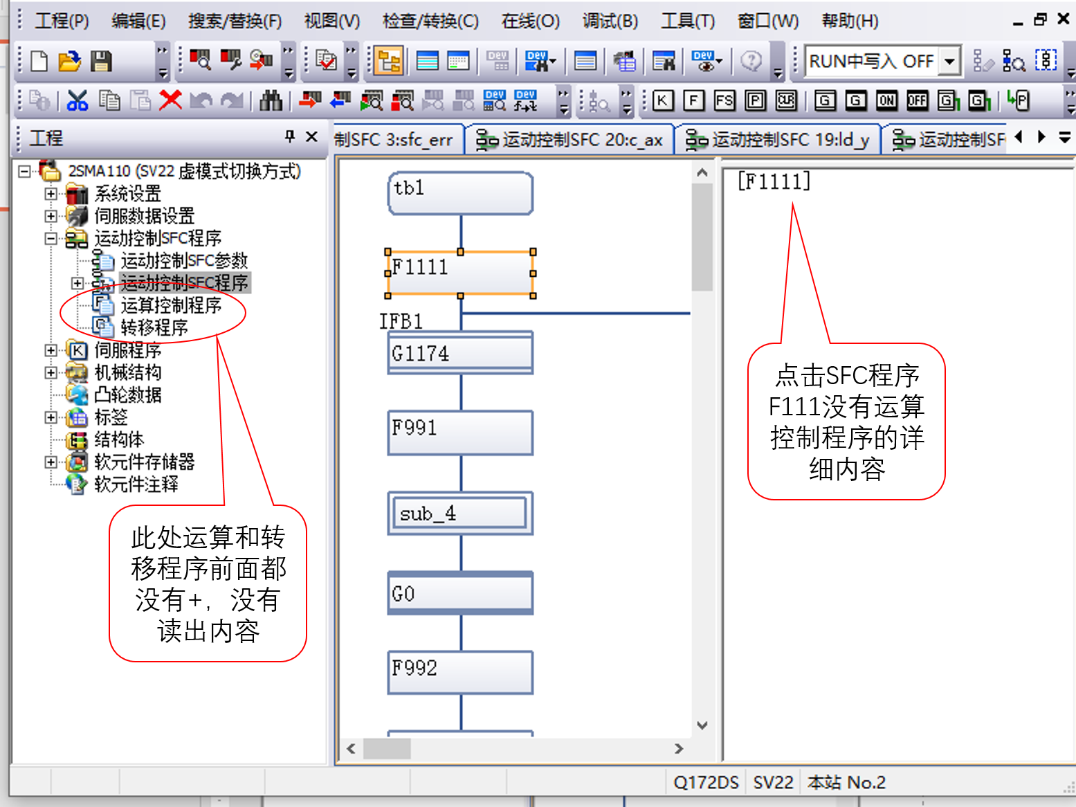 我廠有TOYO的內圓磨床,Q172DS運動控制器OS是SV22,我使用三菱MT2軟件讀取的數據發現沒有讀出G和F的數據,但設備正常能加工,監控SFC程序有數據的運算及轉移,但看不到運算關系,請問各位大神,如何能讀出完整的設備數據,包括G和F數據?