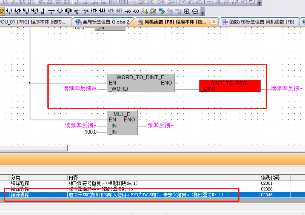 引用引用第1樓fczxjh于2025-03-24 17:52發(fā)表的 :有字的地方才有引腳,你在沒(méi)有引腳的地方引線(xiàn)出來(lái)沒(méi)有用。這個(gè)塊沒(méi)有EN的話(huà),直接把需要轉(zhuǎn)換的WORD填到_DINT的引腳上就行。也可以選FB名稱(chēng)后帶_EN的,就有使能引腳