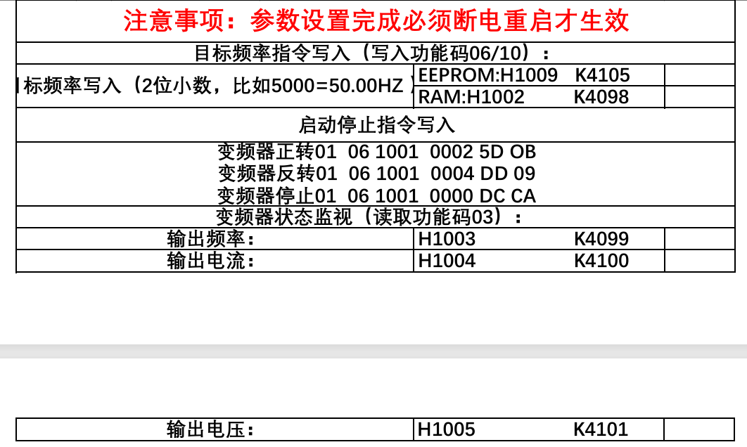 引用引用第2樓zzh6733于2025-06-23 16:50發(fā)表的 :你用哪款變頻器,輸出頻率地址不是4099嗎,你的怎么是4100