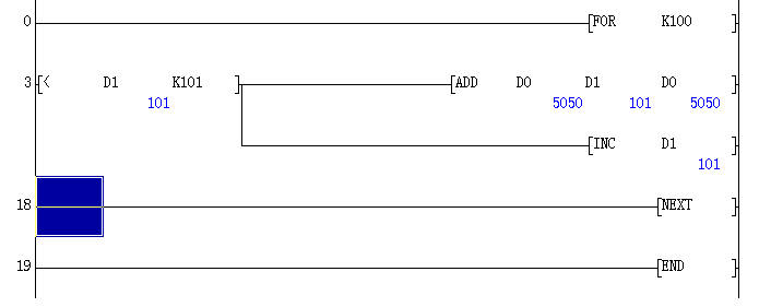 請各位高手指教用PLC的循環指令怎樣實現1到100的循環相加