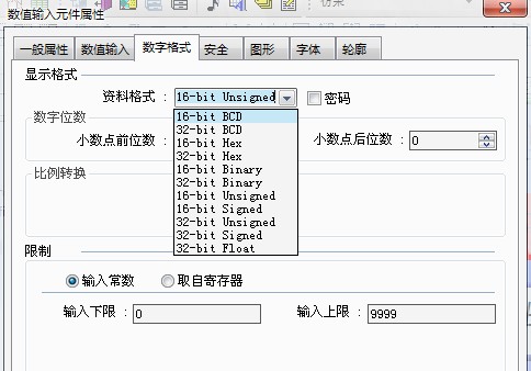 現在我有個歐姆龍的PLC,想用維綸的“數值輸入”按鈕,來修改歐姆龍DM17的數據,但是我不知道“數字格式”里改選什么呢?請大家指教一下,謝謝