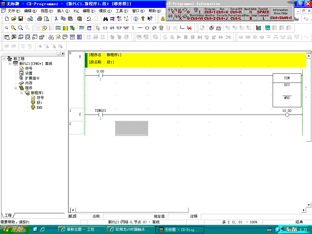 在程序中用了個計時器TIM0023,這個計時器的常開觸點怎么輸入也不對。 ,這個觸點到底應該怎么輸入才是正確的啊。煩死了。![]() |