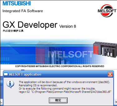 安裝完三菱PLC編程軟件后,打開軟件時出現如圖所示的提示框,如果點擊確定,隨即自動關閉了正在請啟動的編程界面,不知道為什么?請教師傅們