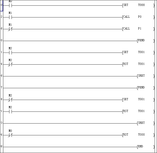 幫我看看程序對不對,最好試試,我沒有三菱的PLC。謝謝!目的:m1動作,調用11-16步,m1不動作,調用18-21;第24步一直調用