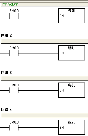 請教:S7200編程怎么編子程序?你看,主程序共4個網絡,每個網絡都可以可以調用,怎么編程?主程序的大方框及漢字是怎么編的?請高手指點
