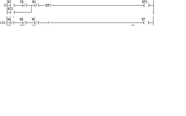 想要問下,該指令是說RA和RB為off,RC為on,R7為on,還是說只要RA、RB、RC有處于on狀態R7就會為on啊?也就是說/(not)指令只對前面的元件有作用還是對于上一次輸出后的輸入都有作用?同樣的問題還有下面一個,是關于DF指令的,如下: