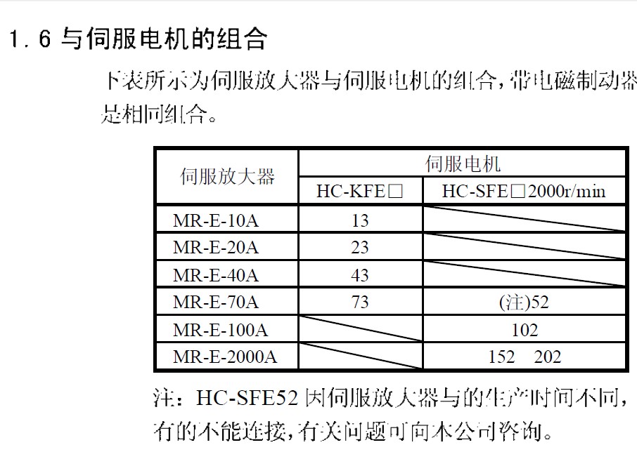 以三菱mr-e-200a-kH003 這個型號的驅動器為例(隨便找的個,其他牌子陸續跟上)。首先,要找到對應驅動器的說明書。詳細的查看每一個環節,特別是驅動器與電機是否匹配。一般在驅動器說明書的前面都給了有匹配表。在驅動器參數設置里,也會有個匹配參數。