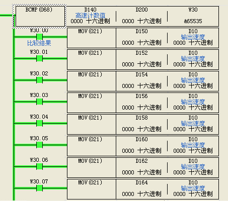 D140~D155與D200~D215 CH對(duì)應(yīng)比較,W30.00~W30.15對(duì)應(yīng)置位