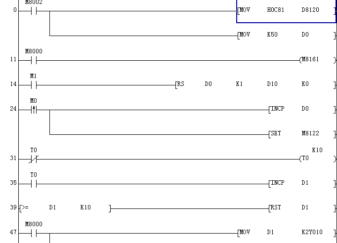 小弟看了PLC中RS指令通信,按照書中說明設置了D8120=H0c81,m8161=1,用RS232格式和單片機通信,但是程序的數據發送不出去,不知道為什么?大家能否幫小弟看看哪里出現了問題