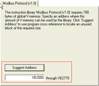 圖2. 缺省情況下是從VB0開始,但因為與Modbus的保持寄存區沖突,所以手動改為VB2000。按“Suggest Address”按鈕也可以自動分配。