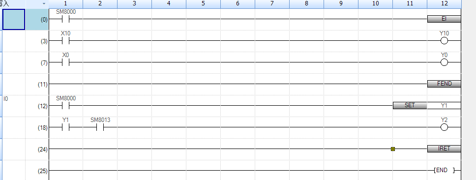 引用引用樓主cumtjohn于2017-08-11 11:17發(fā)表的 關(guān)于FX5U外部輸入中斷問題 :如果外部輸入X0需要觸發(fā)中斷,那么中斷指針是否應(yīng)該為I0?目前WORK3仿真外部中斷沒反應(yīng),不知道是什么原因?但是定時器中斷是可以仿真執(zhí)行的。是否還需要設(shè)置其他的標(biāo)志位。