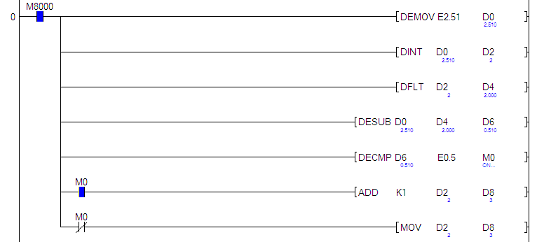 引用引用第2樓ma_wei于2017-08-22 10:12發表的 :INT取整指令是把小數部分去掉,可以加0.5后再用INT指令可以達到四舍五入的效果。