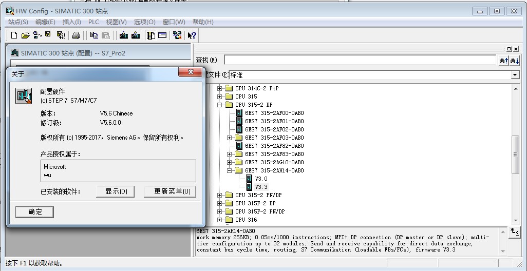 使用STEP7V5.6聯(lián)機(jī)提示未知的在 線CPU類型,315-2AH14-0AB0 V3.38  已經(jīng)在線更新HW,最高版本是V3.3,,哪位大神有最新固件呢?