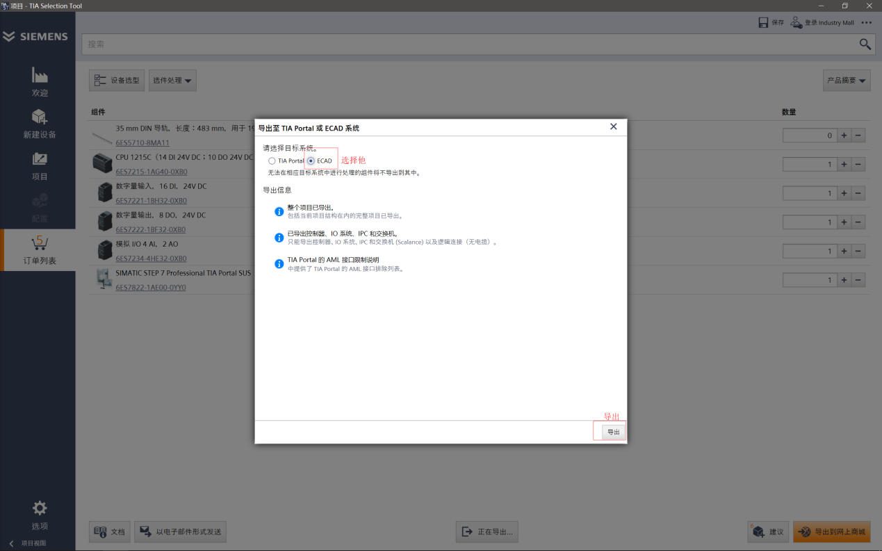 第一步: 在TIA Selection Tool中選型,創(chuàng)建清單,步驟同上,不再贅述