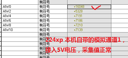 1. 奇怪的是,我用標定的儀表發出5V的標準信號給224XP的模擬量通道,通道會變成16000左右,證明采集數據還正常,把標定儀表設置為0V時,224xp采集的數字值是1000左右,不是應該是0嗎?
