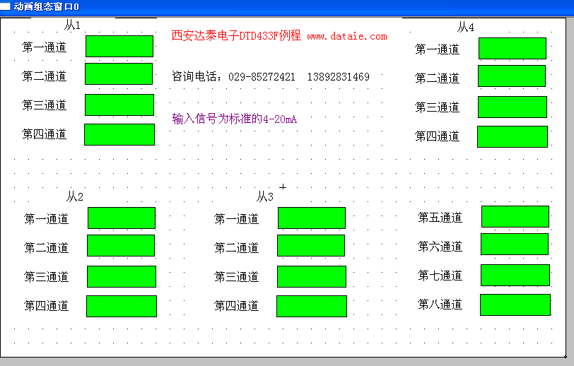 輸入查詢使用“矩形”. 4個從站,地址分別是1,2,3,4.其中第4個從站是8AI建立如下畫面