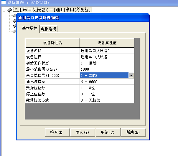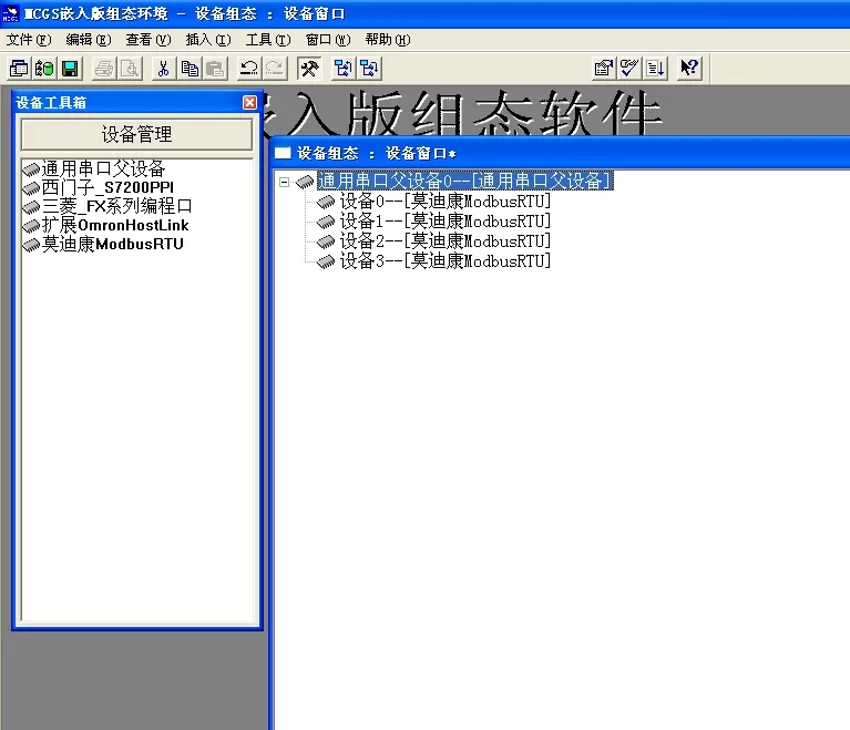 點擊“通用串口父設備”點擊設備管添加“莫迪康 ModbusRTU”設備