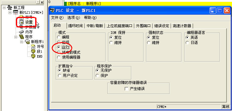 接上電后cpm1a只是電源燈亮,run指示燈沒亮,給輸入信號PLC沒反應,應該是plc還沒有運行,怎樣讓plc處于運行狀態,請大俠指教