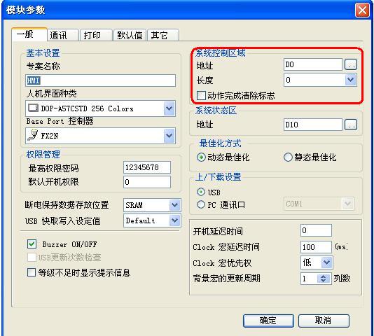 1.在【選項】--【設置模塊參數】里,設置【系統控制區域】的起始地址(長度應該根據需要設置為非0),如D0: