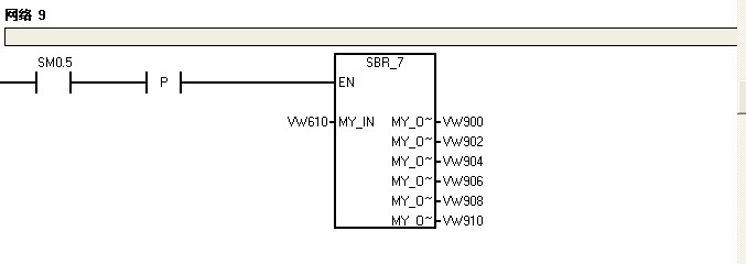 在子程序SBR_7里,所有的MY_IN都是VW610;所有的MY_OUT1都是VW900,MY_OUT2都是VW902……以此類推;