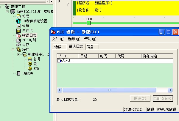 OMRON如何診斷監控出錯信息,像三菱在線診斷那樣出錯信息和代碼 時間都存起來,便于事后分析,                                          本人有一工程的OMRON PLC經常看起來無故停止運行,(注:現場員工看到的現象是死機,按什么鍵都無效,就像斷了電一樣)持續二十秒又自動運行了,不知何故,請各位大蝦幫忙分析一下!