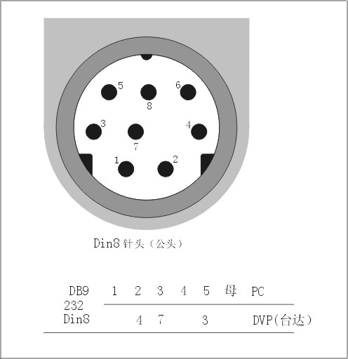 9針孔的針腳號在串口端頭上有,8針公的這頭針腳號的編號如下: