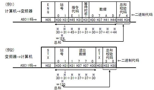 其中計算機到變頻器的數據跟本例中差不多,都是12位。那么,將例子中的數據轉為ASCII碼再看看:
