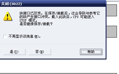 塊接口已改變.在保存/裝卸后,這會導致與參考它的塊產生接口沖突.載入此塊后,CPU可能進入STOP 模式.